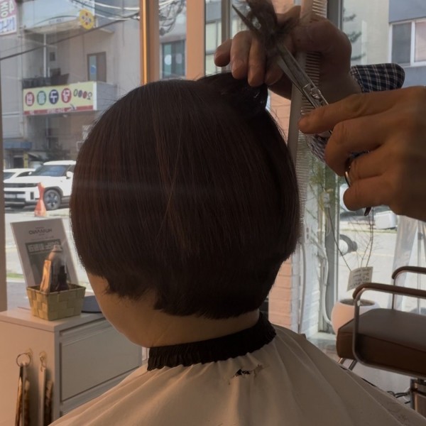 청주시 여자 C컬컷 긴얼굴형을 보완하는 레이어드단발